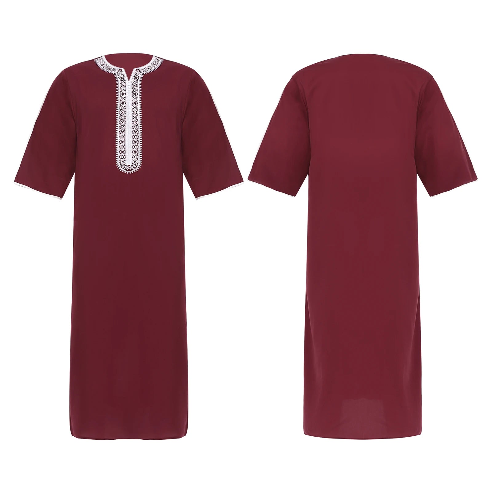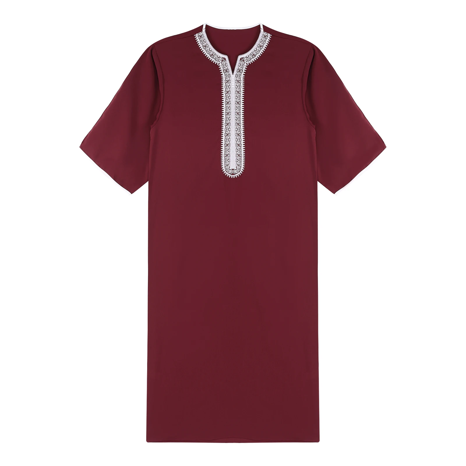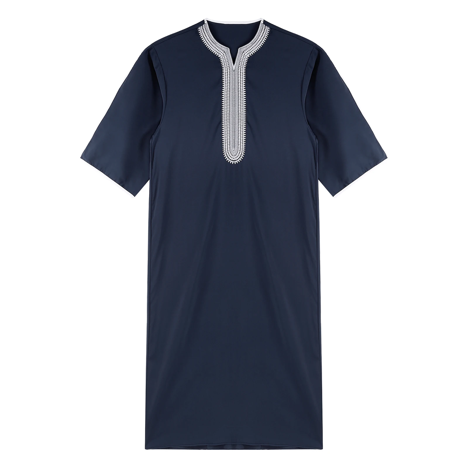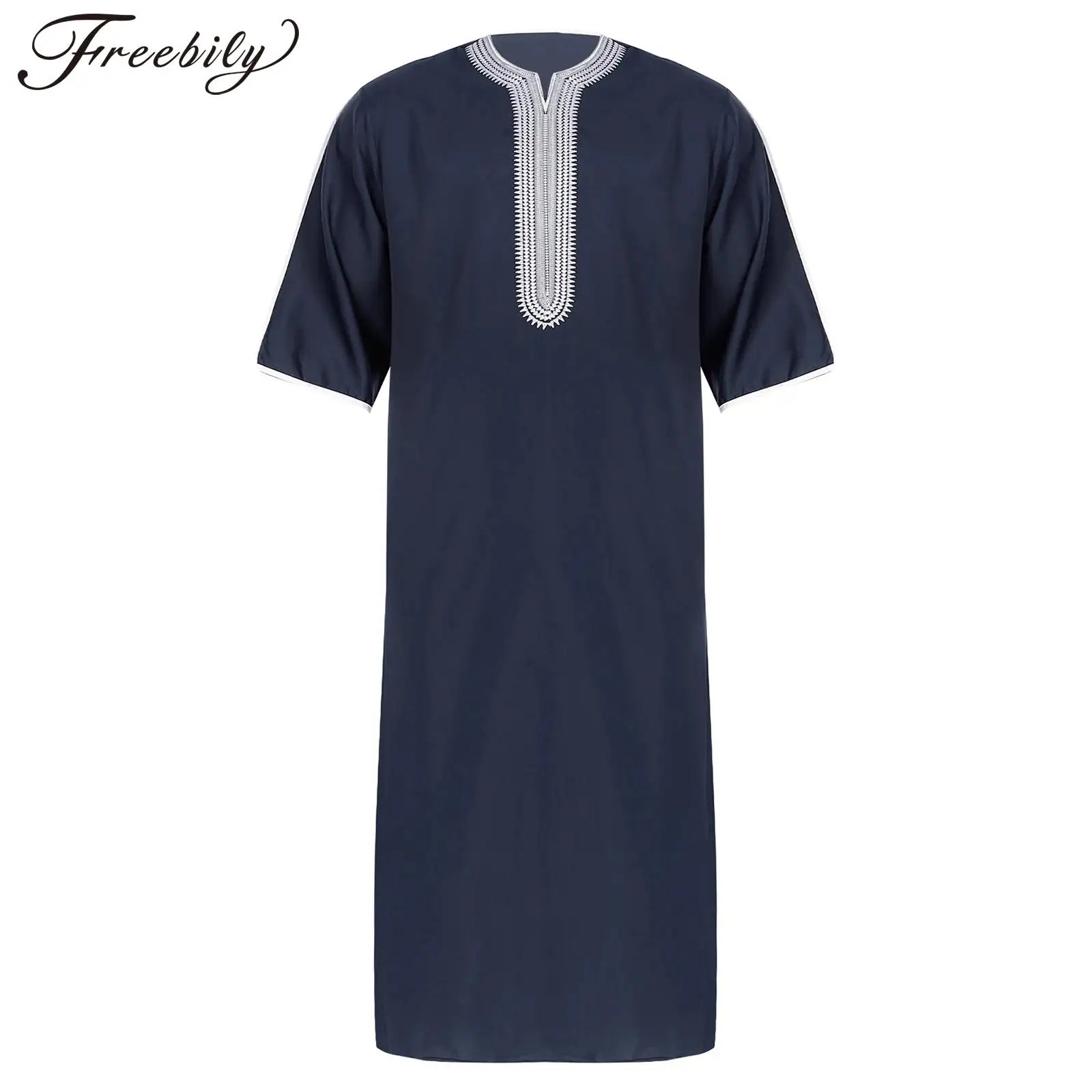 Herren Islamische Abaya Muslim Robe Halbarm Bestickt Locker Atmungsaktiv Lässig Arabisches Kaftan Kleid für Ramadan Tägliche Heimkleidung